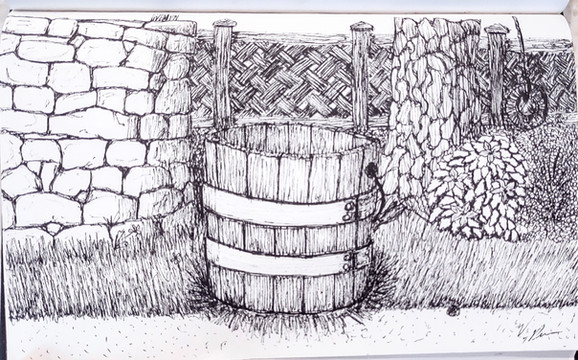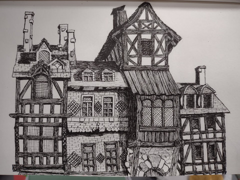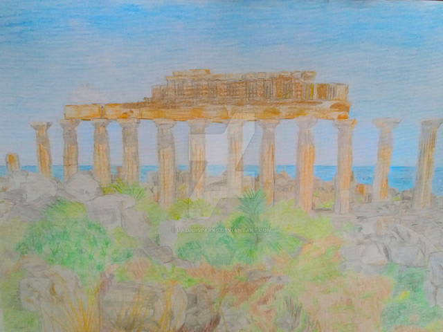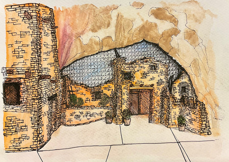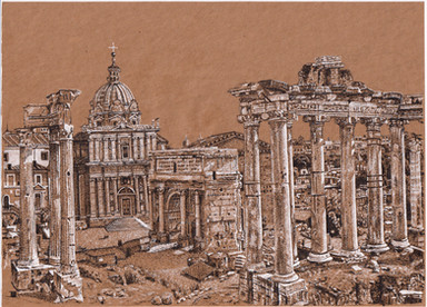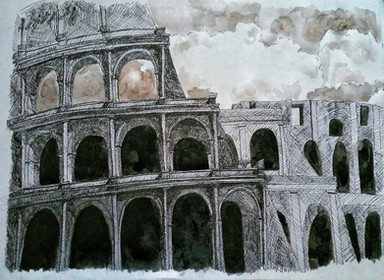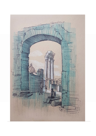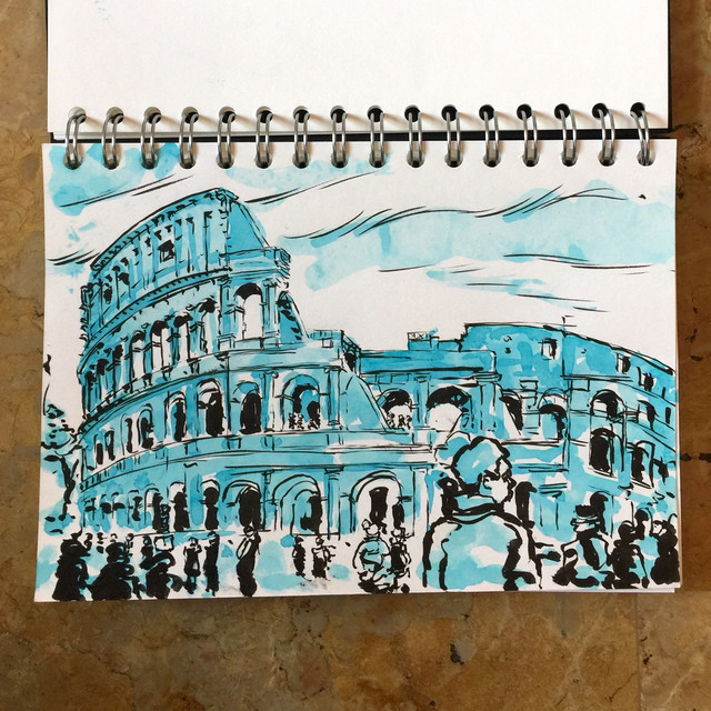 A watercolor and ink picture. My reference was Leptis Magna in Libya. The paper didn’t buckle as much this time.Related content