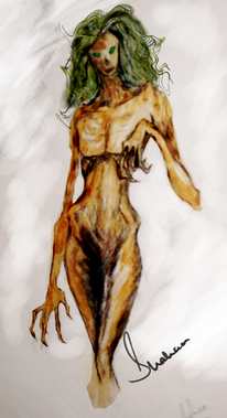 Uni work. A concept piece I've done for an NPC in this year's Journeyman Project (basically all 2nd year game students came together to make a game).The Slasher, as I've affectionately called her, is a something in between a mutant and a zombie, kind of fused with a tree. The level includes some people possessed by nature.