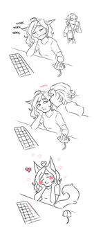 Just Sterling trying to pull Xylia away from work. Trying to get her attention so hes annoying her XD.