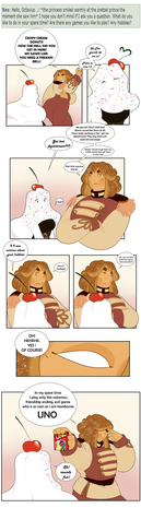 brown: fluffy..*the plushy king spoke from his throne in a serious tone like he was about to say something super important to his main general*...........*his serious face broke way to his usual carefree expression*Β please tell me you got jakiel correcting that prissy princess on public in video Β