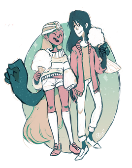 So I got inspired to do this from TheCupcake-Queen and Pomp-A-Doodles so here's Jakiel and Alani drawn in that StyleJakiel © GingerQuin