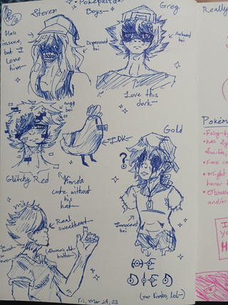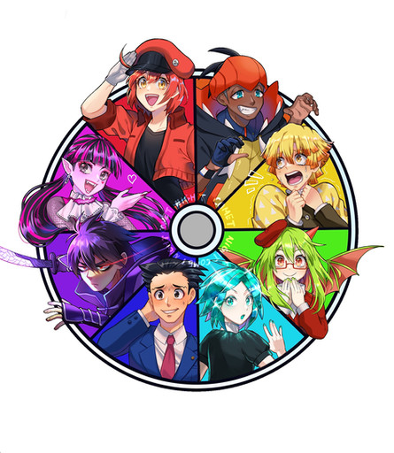 Been working on this for a while now. I spent a lot more time thinking about which characters to sketch for each color than actually drawing them.Red--Steven and Miki, from the Strangled Red pokepasta/Hypno's Lullaby