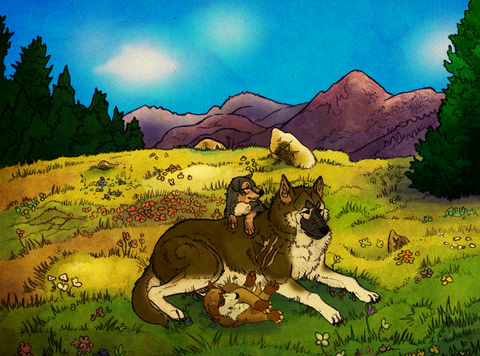 awesome job. live the look of it and you did pretty good with the human, better than i could do. XD the wolves are awesome, verry nice work.