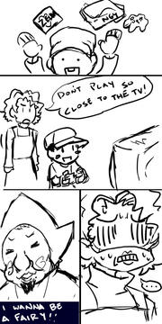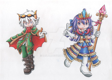 If you get past the crappy lineart, you can see that Adell is holding up one finger and Rozy's holding up two. This because Adell is the strongest in my party(naturally) and Rozalin is second strongest. I might do more, I don't know. Probably only up to the tenth strongest.