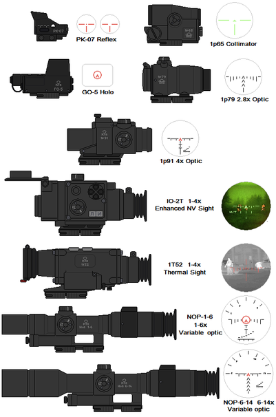 Various attachments I have made alongside some of the weapons as well as the reticle of the optics.Most are just copies of other IRL optics but eh, whatever.