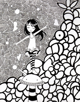 the theme of the drawing is obsessive compulsiveness. not by the girl, but by me. as i have obsession over patterns/paisleys and i like to decorate drawings with them XD