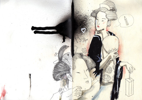 actually the poem was not intended to be there. i tried to write whatever comes to mind in my moleskine, but turned out i draw more in it. it just happened that the drawing occupied the page next to my impulsive thoughts.