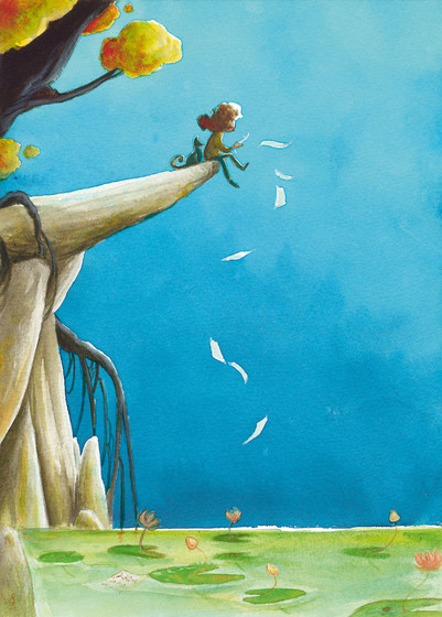 for this one? this was drawn on an envelope. the paper is originally brown in color (the color of the tree & clouds in the picture) so i don't have to paint the paper in the first place.