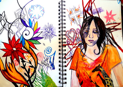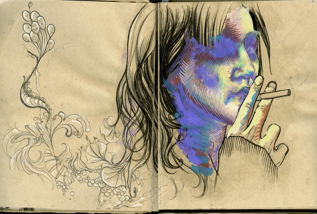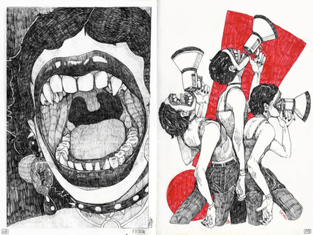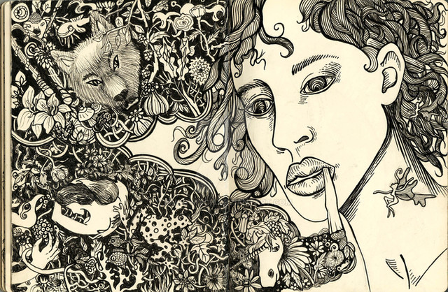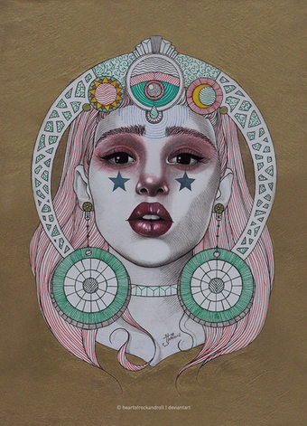 for some reason, i'm more prone to artist's block now compared from few years ago. if there is a saint of blocked inspiration, i imagine it would be someone with a desperation/suppressed anger trying to get whatever that is stuck inside out of them, like saying "GAH!" out loud to the sky.Media: COPIC, Pilot HiTec - dark grey, gold ink on small moleskine sketchbook.