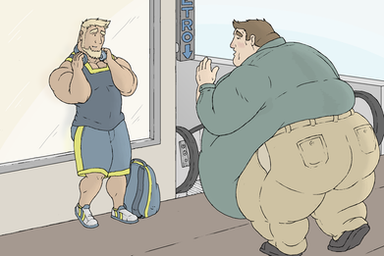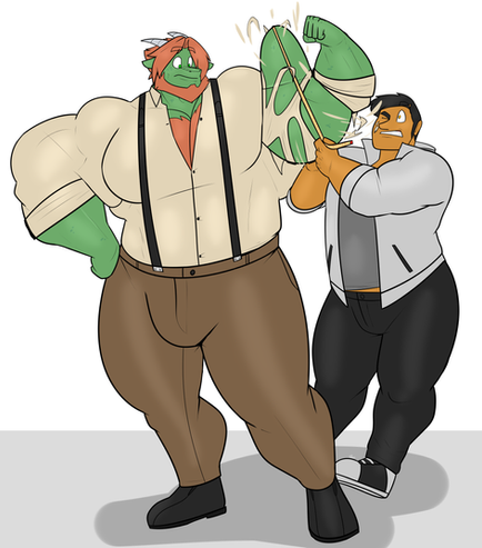 It's even there in your early work with guys so huge they can't move. While most of us simply fetishize big muscles (and happily this is an element, for those of us who love that stuff, in your work) or very large guys, you manage to impart something vulnerable, confused, comic and human in them. These pieces with characters interacting are especially strong.