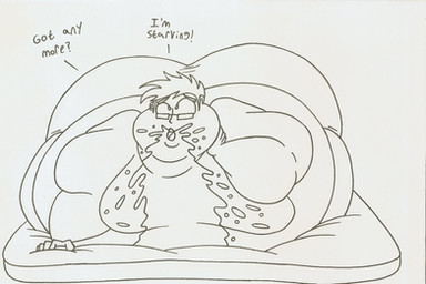 so sexy if you do requests I wonder how it might look if you and Prisonsuitrabbitman did a collaboration. Both of you do spectacular pieces and you give that extra sexual aspect to these sexy tubs of lard. Β One way or another I'd like to see a comic with a concept similar to a zombie dooms day but replacing the zombie aspect of it with a weight gain related virus. Basically various men in the first stages of the apocolypse where they're gaining weight getting fatter week by week and eventually encouraging a weight gain world wide among other men. It's a chllenge I'd like to see taken on either by an artists like you or some author with more time on their hands than I do lol