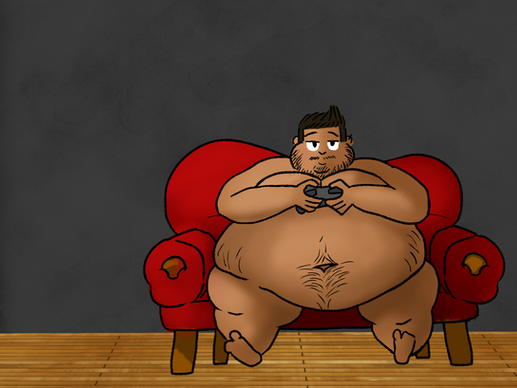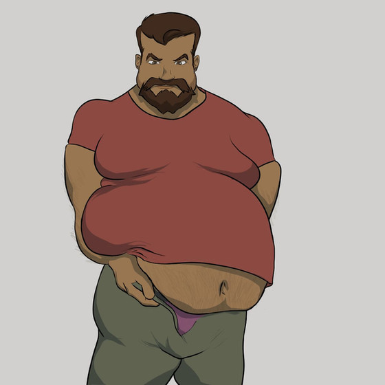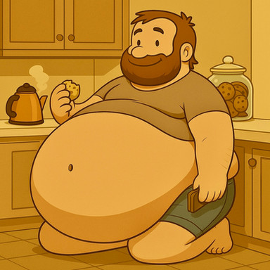 Just enough flab to be in my dreams. I like the way his belly looks against his legs.