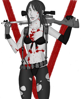 I have to say though dude, LOVE what you've done with the blood here, something about the blood slicked across her face (and pretty much everywhere now that I think about it) just emphasizes just how much fun she had in whatever massacre she just took part in.
