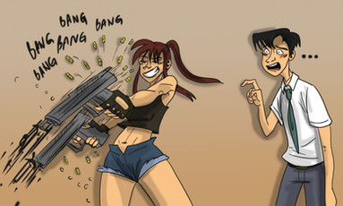 XD Oh my god, never has the phrase "You should see the other guy" ever been more appropriate than it is right here. Just look at that utterly satisfied look on Revy's face. That's someone who's just found the perfect release of adrenaline and now she's just coasting off the cool down period where absolutely nothing can ruin her laid back mood.