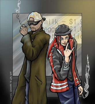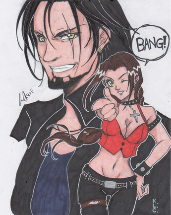 Just an excuse to draw more Rock and Revy...I had this wandering Rock head that I didn't want to erase, because I found it kind of cute, so I just put it together with a random Revy...once in a thousand years even Revy might say some kind words, instead of shooting things to express her feelingsRock and Revy (c) Rei Hiroe