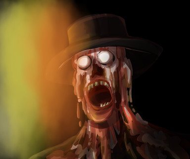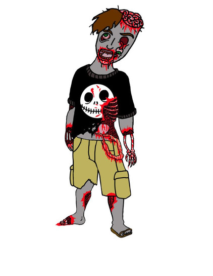 XD Ah well, on a serious note your usage of gore is superb, even if its cartoonishly exaggerated the level of detail here is very spot on. The bones look rotted away as does the pale flesh, the shredded clothes look worn and quite starched for the lack of a better word and the blood splatter looks fantastic (Kinda surprised he has any blood left XD)