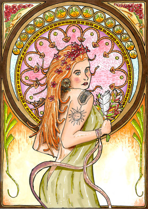 This is wonderful! I love the Art Nouveau aspect, of course, and the Alphonse Mucha influence is apparent and done very well! Nice job!!