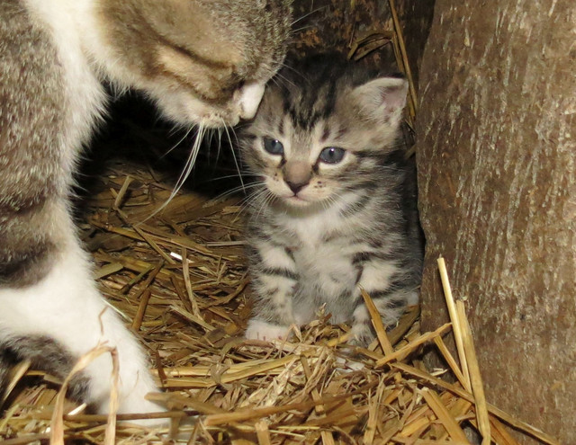 This is one of the four kittnes ther lives on the farm. To bad they are afraid of me so couldent go eny closer. But adoreble, isent this one :3Related content