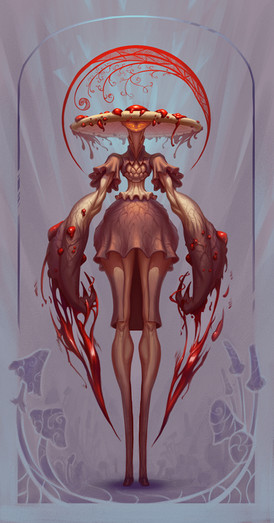 I really liek this character design! It feels very original, intuitive and well themed. C: Not only does she look interesting but it draws me into wanting to know more acout the character as well, and for a design, I think that's such an amazing feat to have! Lovely use of less saturated colors and light and shadow, and you really did things like form her legs super well with only a few colors.