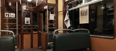 The tram vehicle n.2598 belongs to the series of 100 trams designed by ATM in the early 1930s and built by Fiat-Materfer, like the units n.2592 and n.2595, also restored. It is the first tram with bogies to enter service and with its more than 13 meters in length it was, for the time, the longest tram in Turin. It served until the end of the 1960s when it was put aside, together with a large part of the series, in the new "Venaria" tram depot. Unlike its two sisters, the 2598 was a service tram: between 1971 and 2002 the tram, renamed T402, became a tractor for towing damaged trams; the changes were important, such as becoming bidirectional (with the installation of a second control desk), losing the central door and switching to yellow and blue livery. The ATTS brought it back to its initial service conditions of the early Thirties: the 1971 modifications were eliminated, the original longitudinal benches in the front half, the wooden and concrete floor (the latter now simulated by a resin), the double row of seats, the single-leaf rear door and the large external writings indicating the use of the doors. With these characteristics it returned to service in 2010.
