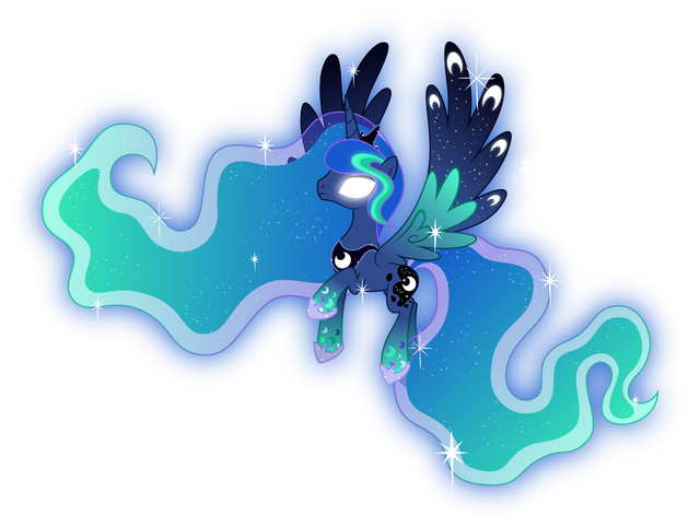 Nightmare Moon Origins, Theory #3- Corrupted by dark magic. Cool picture. Luna looks amazing wit the dragon eyes.