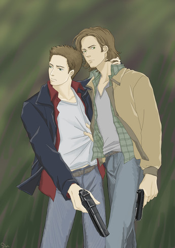 I'm seeing Cas thinking, "Is this some strange human custom?" He looks so clueless! I really like the colors you chose and their expressions. Very nice!