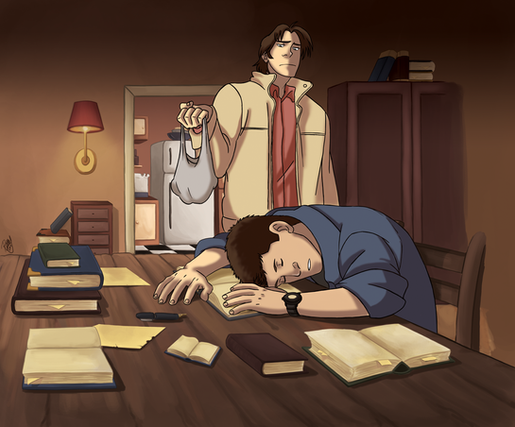 Oh Dean, suffering through studying or research just to be with Cas, sign of true love. Your arts are always lovely.