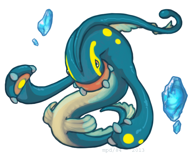 This critter's name is Mecro. As you can see part of his body is like glass, but when he enter water, its phase will turn into half-water and half-LIQUID CRYSTALIN! (Jelly) So you can still see his body, but you will never able to touch it. >
