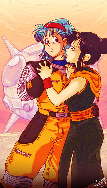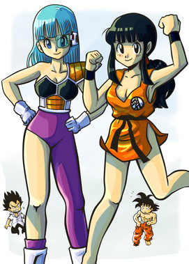 This is so cute! Poor ChiChi's top is about to fall off I bet Bulma would have had a much better time on Namek if those two had been there to keep her company