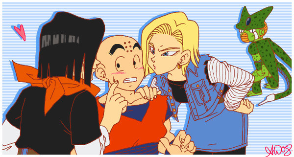 On a side note, I love Bulma's glasses and 18's red ribbon tattoo. Hehehe.. )))