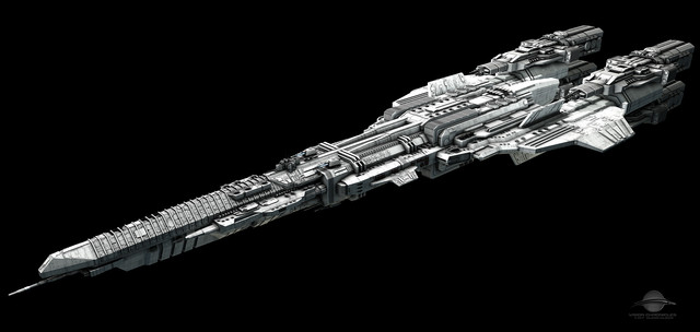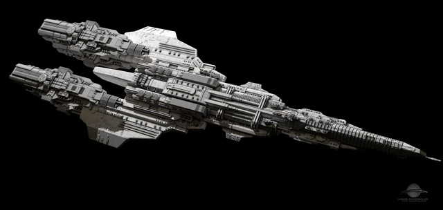 Very, very, nice. It strikes me a sort of a cross between the Bismarck and Red Dwarf. It captures the awe and sense of grandeur that we already know to associate with a seagoing battleship and moves it into the age of space. Totally cool.