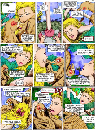 38Few people know about this wonderful pigeon, as she is woefuly absent from the most known version of the story. I speculate that giving an actor in a stage play an enormously long neck would be no simple task in Victorian England. One might interject that it just isn't practicable.