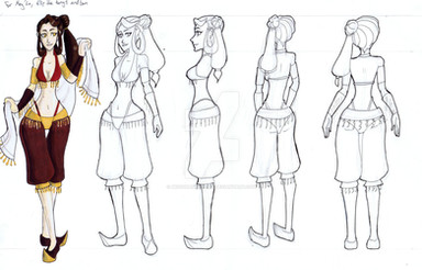 Final model sheet for featuring Riven in her 'night job' attire. Hey, a girl's gotta make a living.Related content
