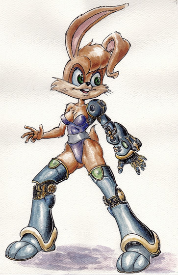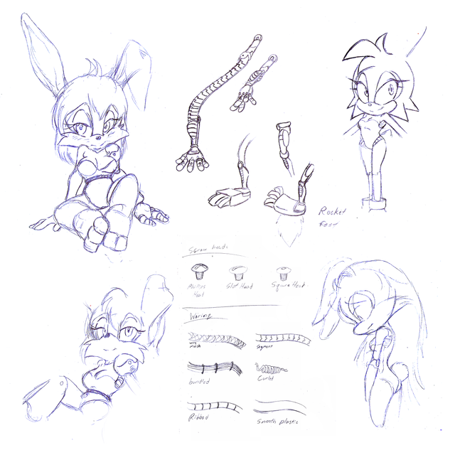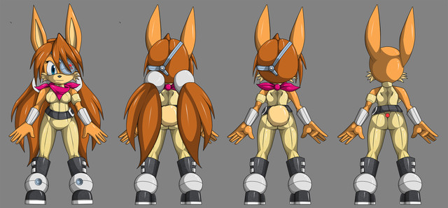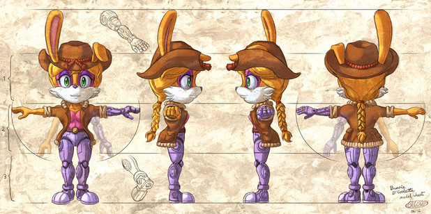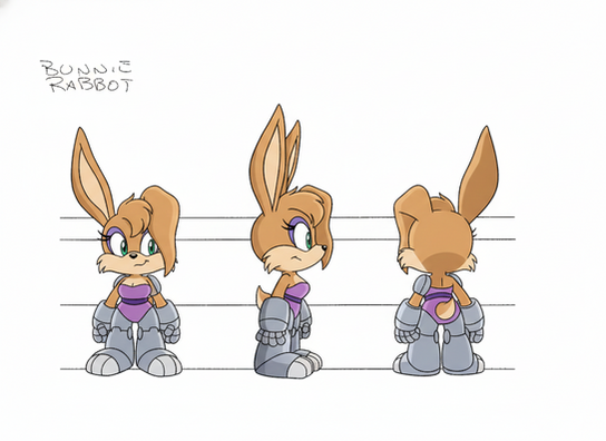 Second commission for REGIT-NOSMIRC-RANUL .When asked to draw Bunnie Rabbot, I didn't know what to make of it. Out of all the characters in the series, Bunnie's design has changed the most since she first appeared in the cartoon. I eventually did two model sheets featuring her old and new look. This design isn't directly taken from the show, but it's not based on any particular artist either because of their creative differences. Even Art Mawhinney, who normally follows the cartoon models quite closely, had his own design for Bunnie. This is more of my interpretation of her original appearance that was featured in Me and My Shadow , minus the whiskers. I also added a few more details to her bionics that I thought would help flesh out the 3D model.