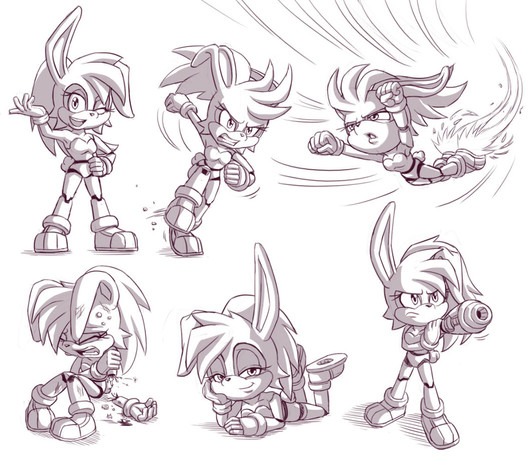 I find that the current style for Bunnie and Sally shared by Yardley, Butler and Peppers is good modernization of their original cartoon appearance. However, I'm one of the fans who dislikes the way Yardley draws them with ridiculously large hands, since it seems like he's just trying to match the size of the gloved hands of the game characters.
