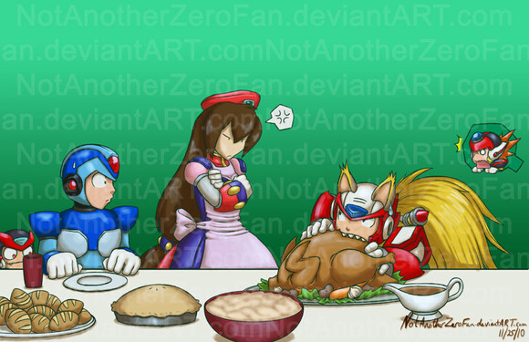 "Oh, sweet Reploid God. *facepaw* Roll, you better leave the cooking to someone else. Probably me. No worries, I never shed."