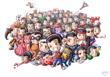 If you happen to be a child of the 80's, I'm sure you could name dozens of characters from your youth that captured your imagination on Saturday morning cartoons. To me, they're a part of why I consider the 80's to be the greatest decade of my life. They were all about flashy effects, rock 'n roll themes and promoting toys. I wanted to honour that era with a massive group shot of characters from over seventy of your favourite shows. This took two weeks to do - the longest I've worked on any single picture.This image was inspired by the cover of Capcom Design Works . The title in the top-right is the theme song of The Raccoons . I feel it best represents the spirit and energy of 80's animation, and it's something I used to listen to a lot while working on this pic. Someday I hope to draw an adjoining picture with characters from 90's cartoons. Two points to bear in mind: there are no anime shows featured (otherwise the pic would be twice as big as it already is) and there are no British shows. Even though I'm a Brit myself, I will happily admit that my country's own animation is utter pump. I mean, c'mon. Jimbo? Bananaman? Superted? Gimme the frickin' SPACE BATTLES!!