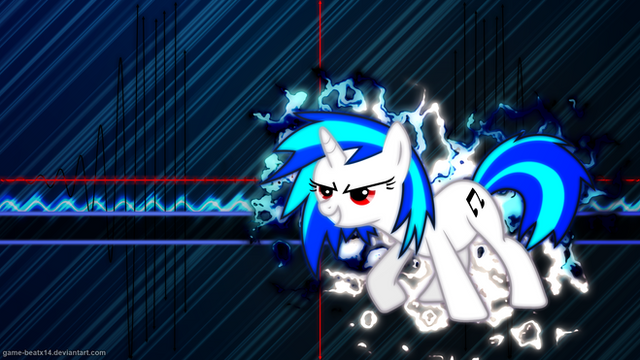 Vinyl Scratch being... well Vinyl Scratch. Pretty random here....Inspired by this guys awesome wallpaper: [link]