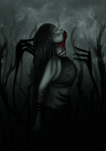 is this an OC of yours?^^ Pretty much put in darker vibe next time, and this'll score loads~!^^ (then again I understand your watercolors can't take that, or else you'd easily run out of them~ >3 but maybe in digital works you can be as dark as you need~