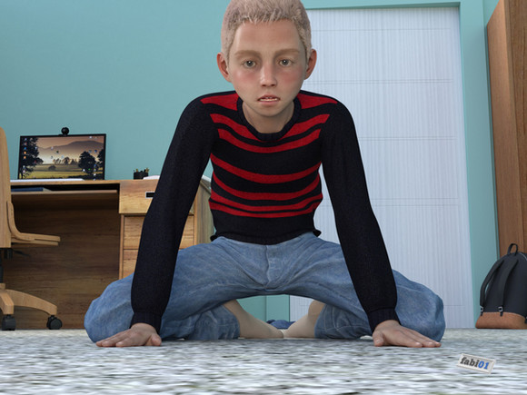 Rendered in D|S. The giant boy is the "Jarryd" character from DAZ, the little boy is "Luke" from the old Milboys pack. The locker and the background props are from the "School" set by greenpots.