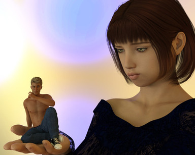 I can't tell if he's playing hard to get, or legitimately doesn't want to be there. XD Hmmmm. Maybe she's had a crush on him forever, but when he didn't return her feelings, she shrank him. >:3 Orrrr they've always been their respective sizes and it's just one of those "Sigh. Not this gross affectionate stuff again" things. Or any number of other things I could ramble off, but I shall spare you. It's a great piece; the skin textures, their expressions, the background, the lighting, etc etc. All awesome as always. X3