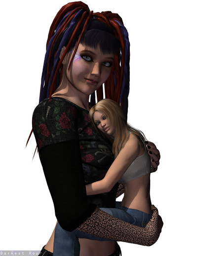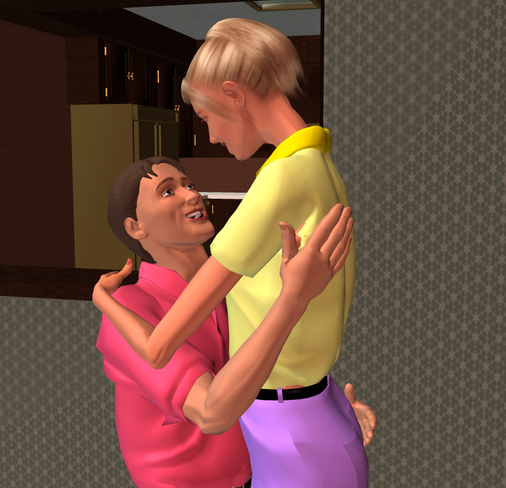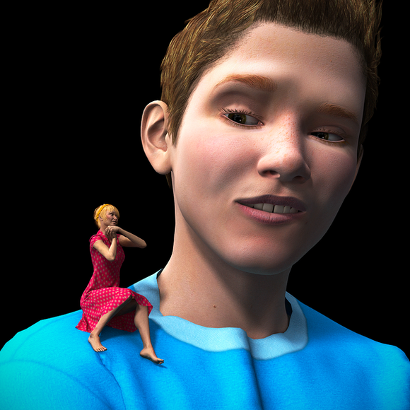 If you look closely, it looks like she's a bit more than half way through going from surprised/freaked out to a smile. The expression on the boy's face is sweet in the extreme. An overall wonderful and adorable render.