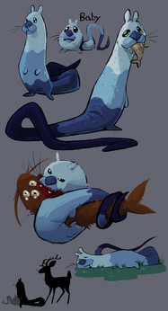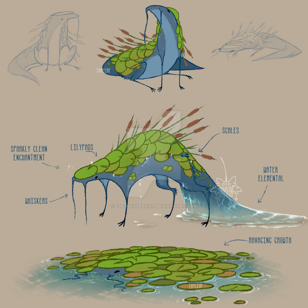 I like to think the water wisteria on his back perks up some whenever he spends some time in the lake. Although that's rare, he doesn't like to go swimming. He can easily be punted into the lake, though. Perfect size for drop kicking.
