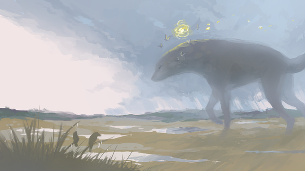 Cliff watches Beau meander past him in the storm... at least he's sure that's him- who else could it be? More clouds in the distance loom over the plateaus with the promise of thunder. The sun shines white and hot as the clouds close around it. No footprints trail the two, they don't last very long.Boy! This has been sitting in my drafts for a while. I'm just glad I was able to finally finish this.