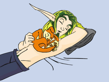 (Trying to breathe) A...a...a..aAAAAAAHHH! (Kicks everyone out and snuggles with Jester and cute little creature)