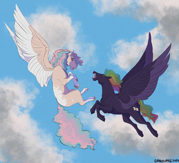 “I’d be damned if I let the child of Rarity and Twilight best ME at anything. Not that he's very good at much anyway.” a shit eating grin crept on Excalibur’s face and his tail rose.