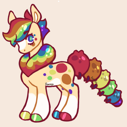 Doodle is the youngest of the pie kids. She usually gets what she wants all the time because of it. Despite that she isn’t incredibly spoiled or entitled. Doodle was born as a pegasus but as she grew her wings didn’t. All she has left are some very tiny pair of wings on her back. Being born with wings took pinkie and cheese back a bit. There hasn’t been a pegasus in their families for a long while now.
