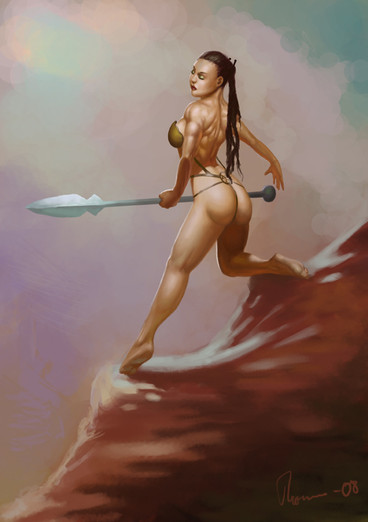 Some warrior woman in action. I intended to paint a battle scene in the background, but just wanted to wrap it up and be finished with it. Photoshop with wacom tablet every odd hour over approx a week.Related content