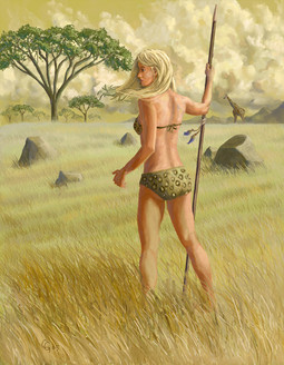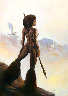 Some one commented that your style was similar to Vallejo. With Frazetta just celebrating his 80th birthday and seeing so much of his work and tribute works to him, this piece, done in your unique style, did bring his work to mind. I guess when your work is favorably compared with two of the fantasy masters you know you are doing something right. Very nice work. The anatomy couldn't be more spot on.