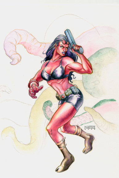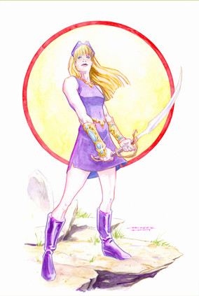 This was a leftover commission from a convention. I couldn't get it done in time for the end of the show, so I thought I'd work on it after. Maybe I'll sell it at the next con!It's just a simple watercolor on illustration board.